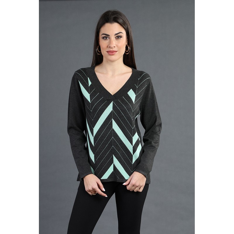 Non perdere lâoccasione di brillare! Aggiungi subito la maglia scollo a V con lavorazione ad intarsio geometrico al tuo carrello e porta il tuo look a un livello superiore di eleganza e originalità!