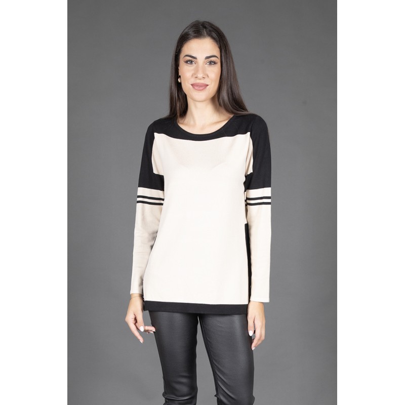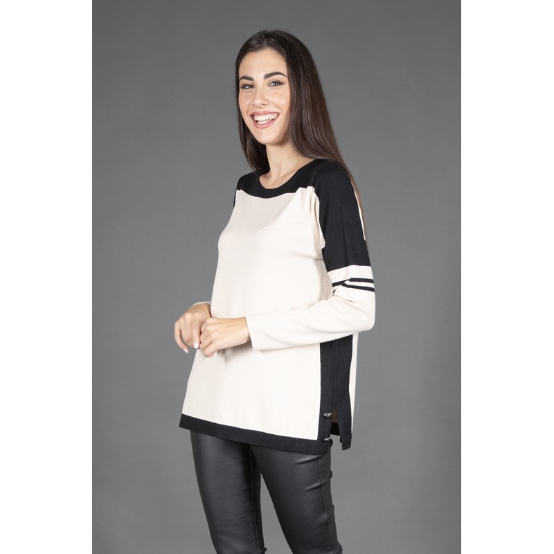 Rinnova il tuo guardaroba con la nostra maglia bicolore, un capo distintivo arricchito da eleganti spacchetti sul fondo e raffinate applicazioni in metallo. Realizzata in un pregiato mix di filati (70% viscosa, 20% lana, 10% elastan), questa maglia offre una vestibilità comoda e morbida, perfetta per ogni occasione.