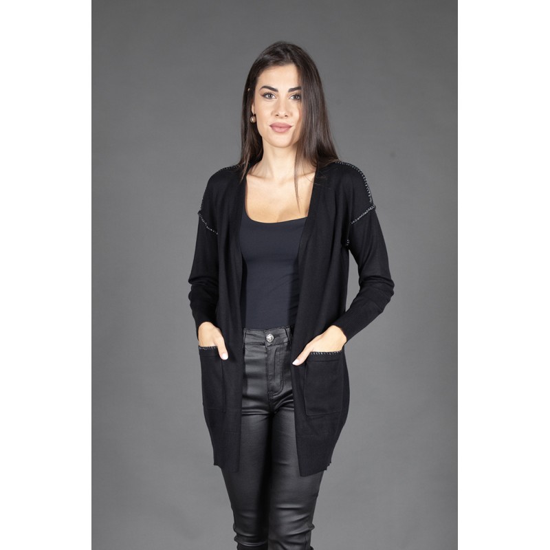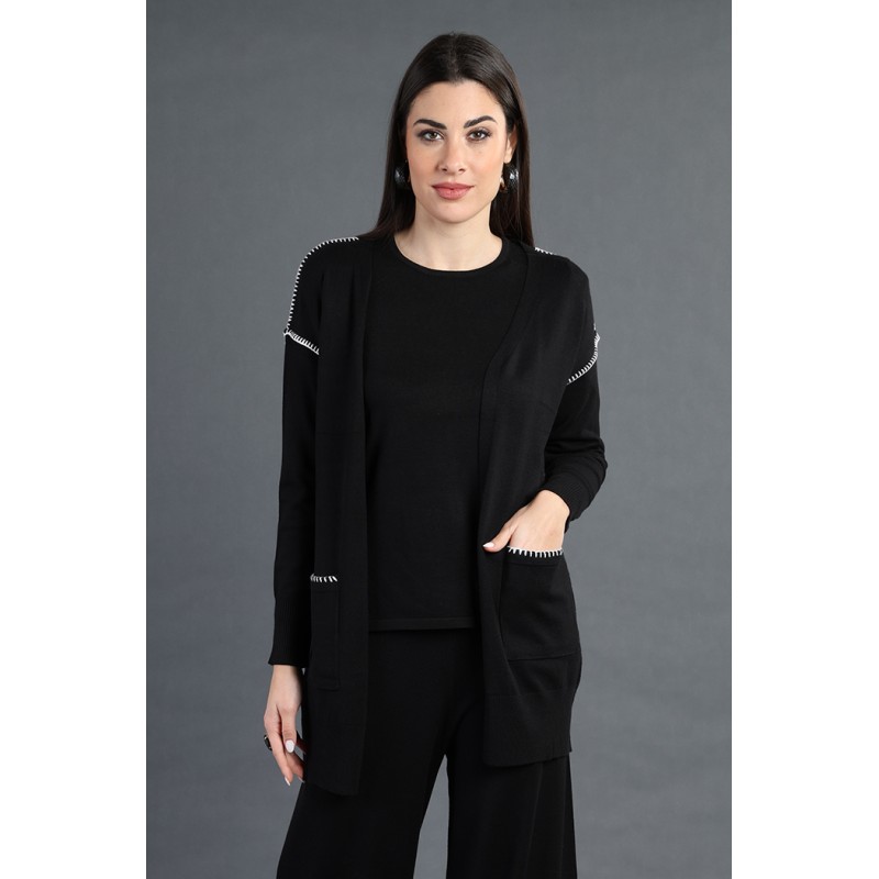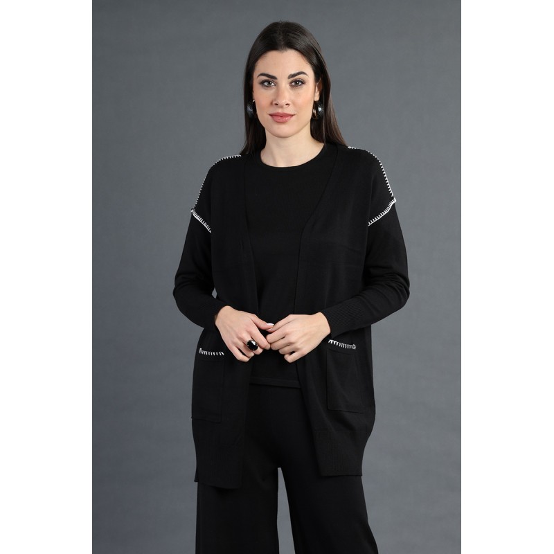 Aggiungi un tocco di stile al tuo guardaroba con questo cardigan sciallato, dotato di pratiche tasche a toppa frontali e raffinati ricami nelle cuciture a contrasto. Realizzato in un pregiato mix di filati (70% viscosa, 20% lana, 10% elastan), questo cardigan offre una vestibilità morbida e confortevole, perfetto per le giornate più fresche.