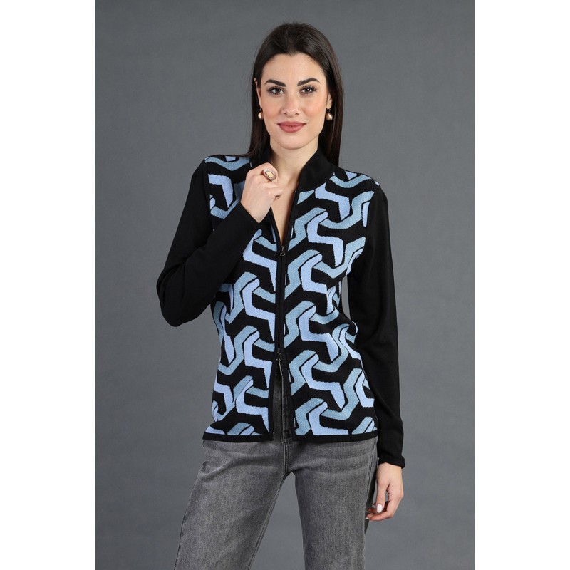 Scopri la nostra giacca zip doppio cursore con jaquard arricchito da lurex, un capo che unisce stile e funzionalità! Realizzata con un morbido mix di 70% viscosa, 20% lana, 5% lurex e 5% elastan, questa giacca offre una vestibilità confortevole e una sensazione di lusso sulla pelle.