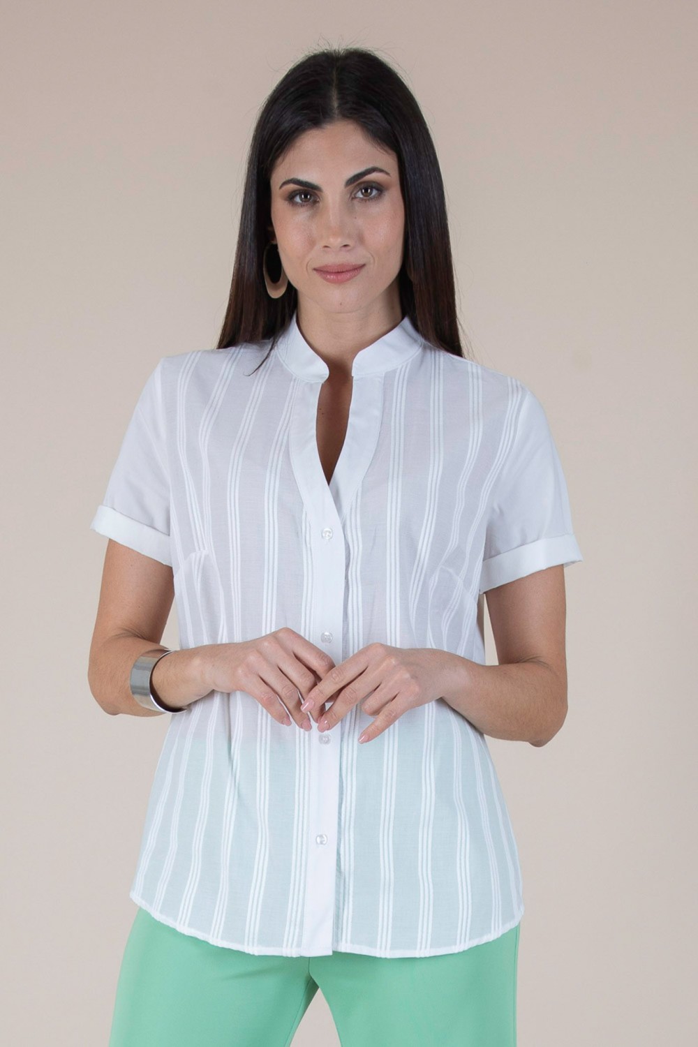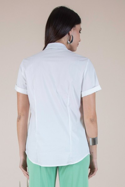 Questa camicia in cotone con scollo a V e collo alla coreana è un must-have per chi cerca uno stile raffinato e al contempo pratico. Il tessuto operato a rilievo aggiunge una texture unica, che rende questa camicia un pezzo versatile, perfetta per le giornate estive o come base elegante per un look da ufficio. La sua vestibilità comoda e il design minimalista la rendono facilmente abbinabile sia a pantaloni che a gonne, per un outfit che non passerà inosservato.