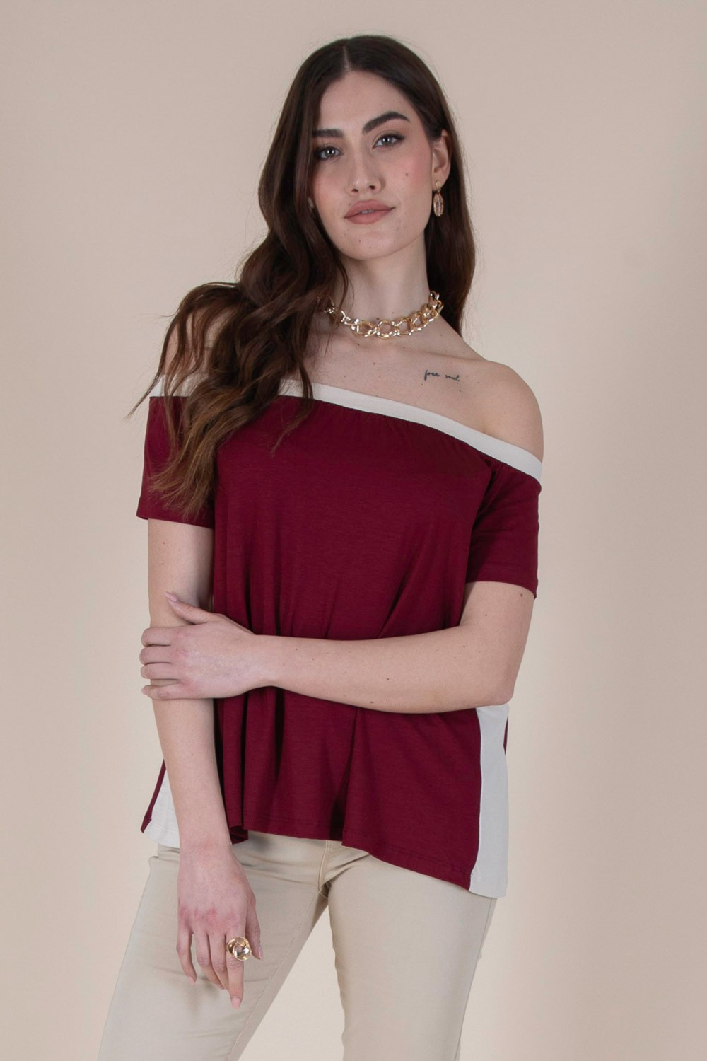 Rinnova il tuo guardaroba con la casacca bicolore con scollo shiffer e mezza manica, un capo che unisce design contemporaneo e comfort assoluto. Il raffinato contrasto bicolore aggiunge un tocco dinamico e sofisticato, mentre lo scollo shiffer, morbido e delicato, valorizza il decoltè con eleganza. La mezza manica offre una vestibilità versatile, perfetta per affrontare ogni stagione con classe. Realizzata con tessuti di alta qualità, questa casacca , ideale per creare look casual chic o per completare outfit più formali con un tocco di stile unico. 95% viscosa 5% elastan