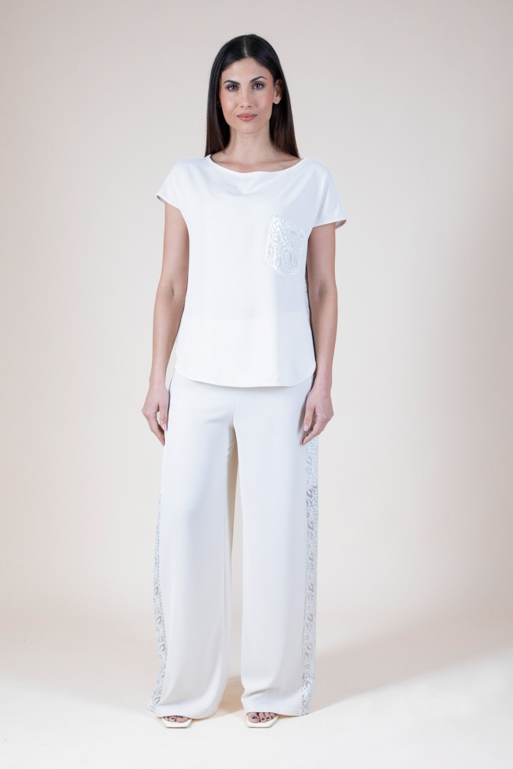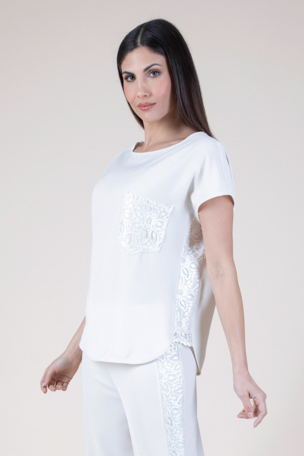 Aggiungi un tocco di classe al tuo guardaroba con questa casacca in tessuto fluido, un capo perfetto per ogni occasione. Il design semplice ma sofisticato è arricchito da tasche funzionali e da eleganti fianchi in tessuto placcato, che donano un look moderno e ricercato. Il tessuto fluido garantisce una vestibilità confortevole, mentre i dettagli raffinati rendono questa casacca versatile, ideale per essere indossata sia durante il giorno che per una serata fuori.