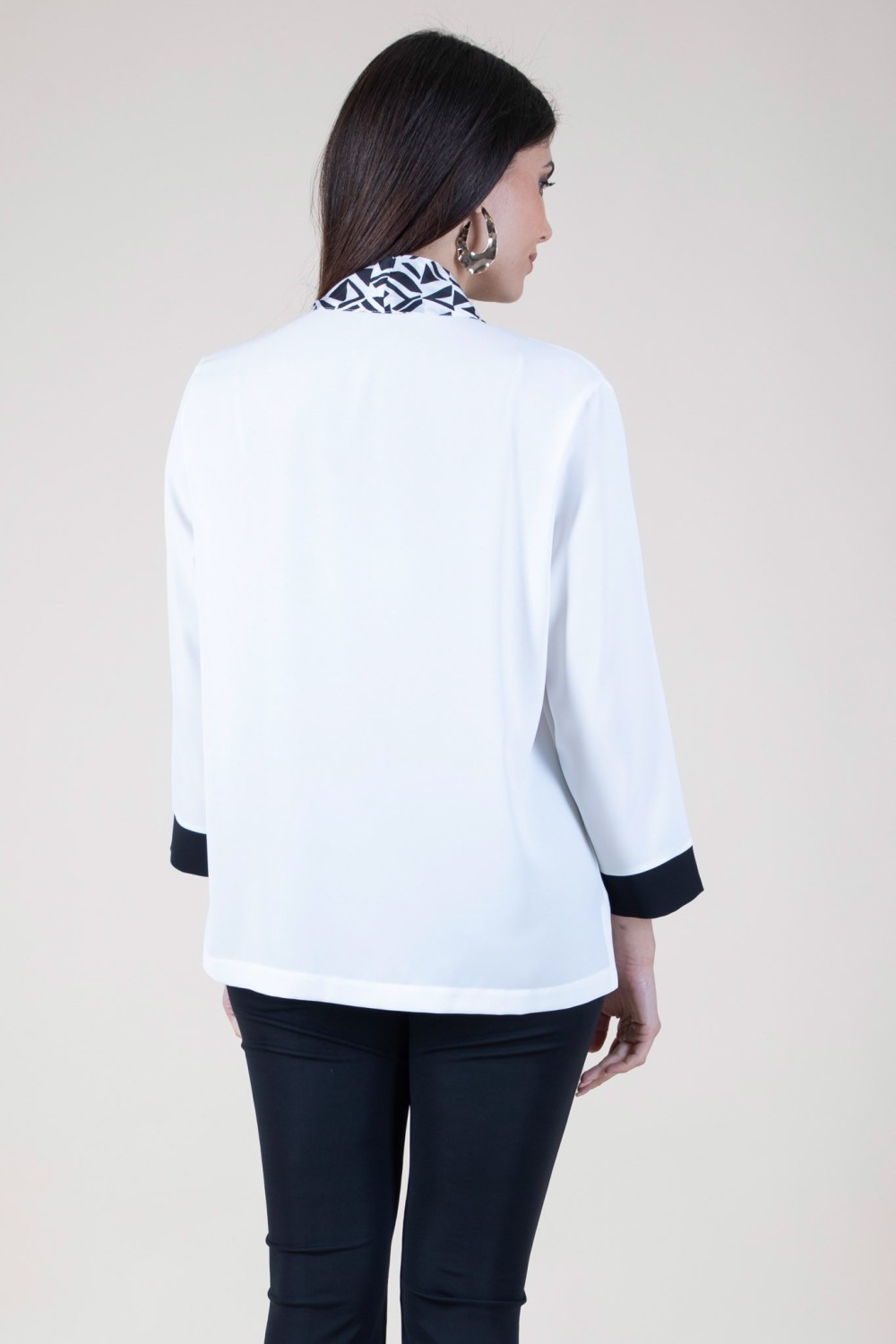 Eleganza e versatilità in un solo capo Scopri la casacca primaverile perfetta per aggiungere un tocco di raffinatezza ai tuoi outfit! Il design fluido e leggero è impreziosito da uno scollo a V che valorizza il dècolletè con classe, mentre il foulard integrato negli occhielli aggiunge un dettaglio sofisticato e originale, perfetto per chi ama distinguersi con stile. Le maniche tre quarti offrono il giusto equilibrio tra copertura e freschezza, rendendola ideale per la mezza stagione. Il tessuto morbido assicura una vestibilità confortevole e impeccabile, perfetta per essere indossata sia con pantaloni eleganti che con un look più casual .Un capo indispensabile per il tuo guardaroba primaverile! Acquistala ora e dona un tocco di classe ai tuoi outfit di stagione! 95% poliestere 05% elastan