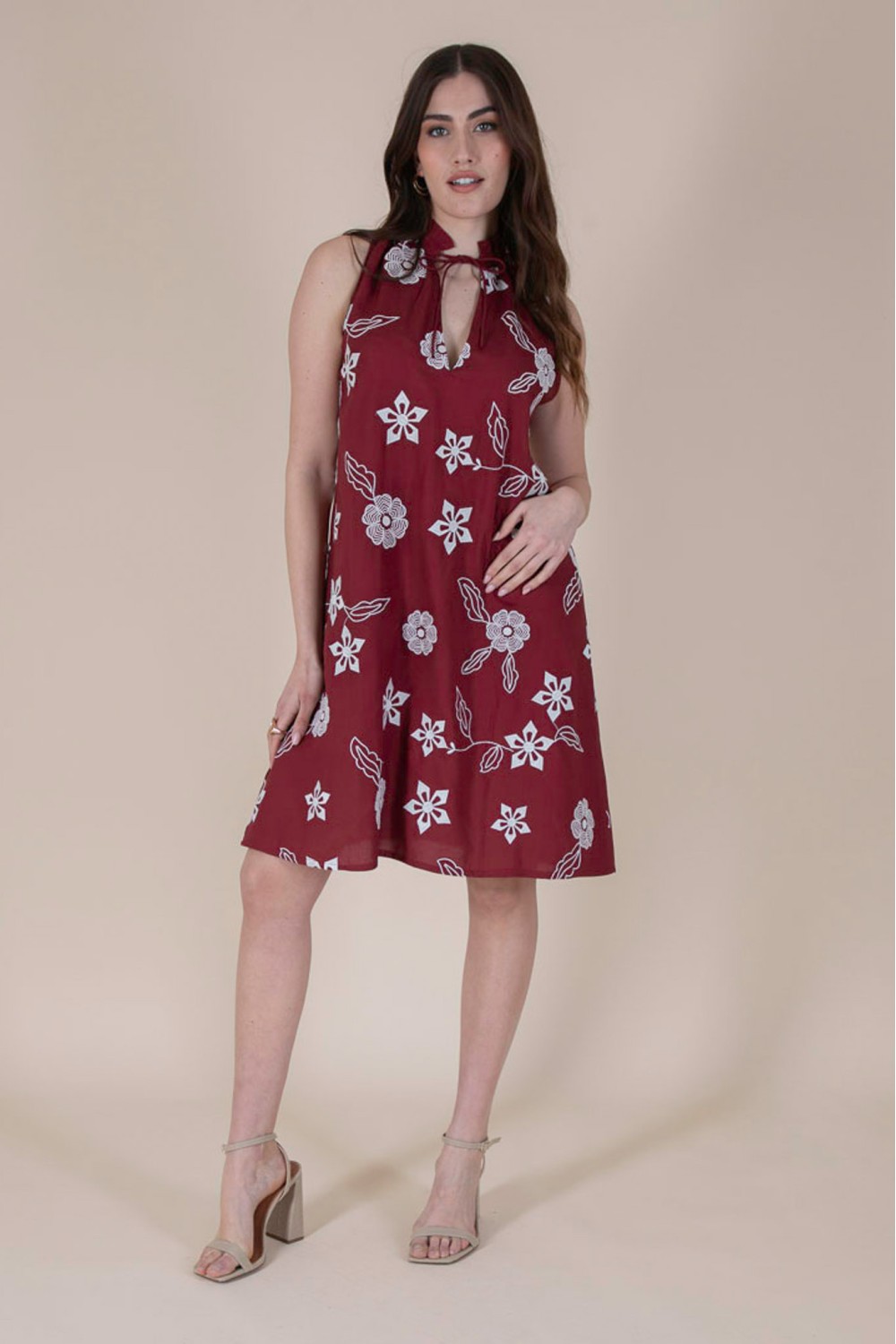 abito con ricami flireali in viscosa con stacci frontale su collo 100% viscosa