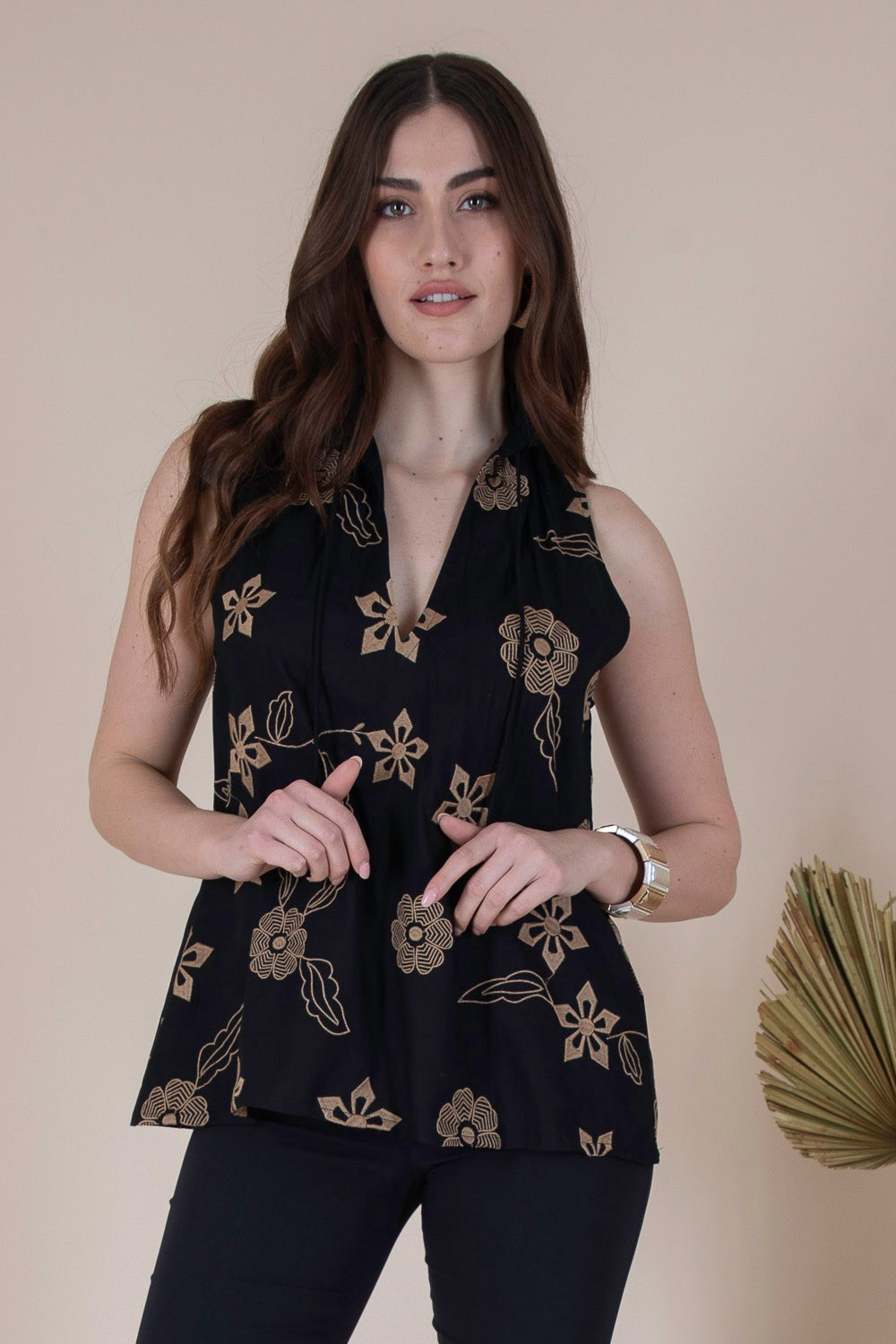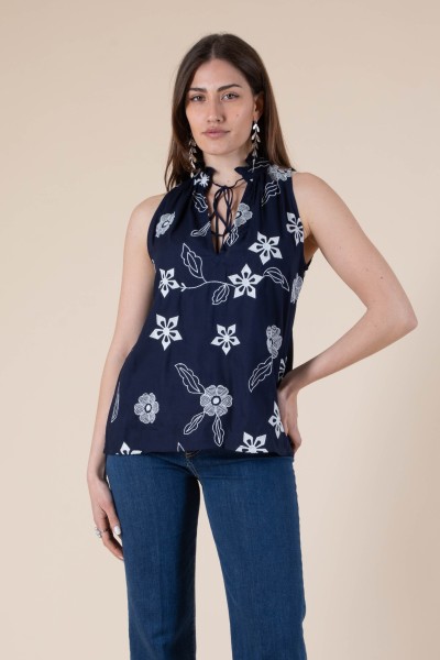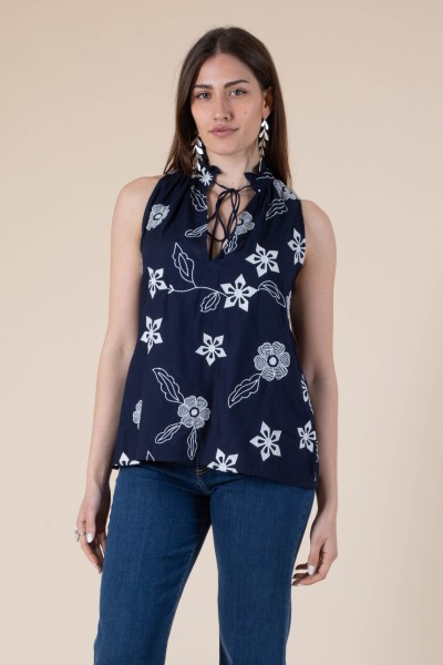 casacca con ricami fantasia floreale in viscosa con spacco frontale sul collo 100% viscosa