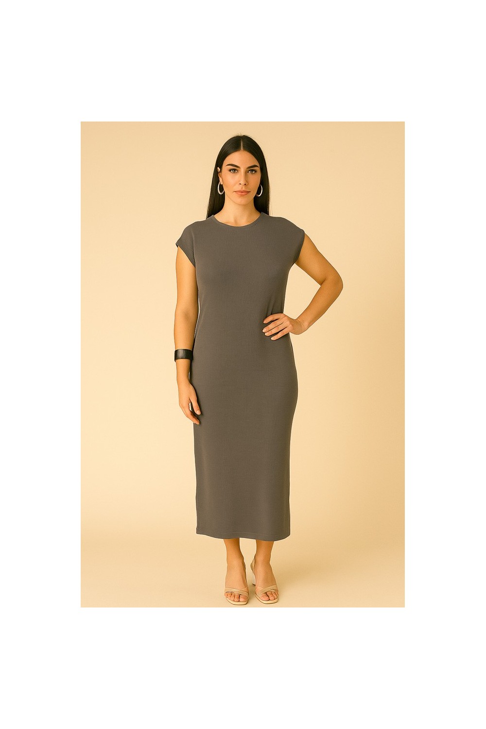 abito a coste in viscosa giro collo mezza manica 97% viscosa 3% elastan