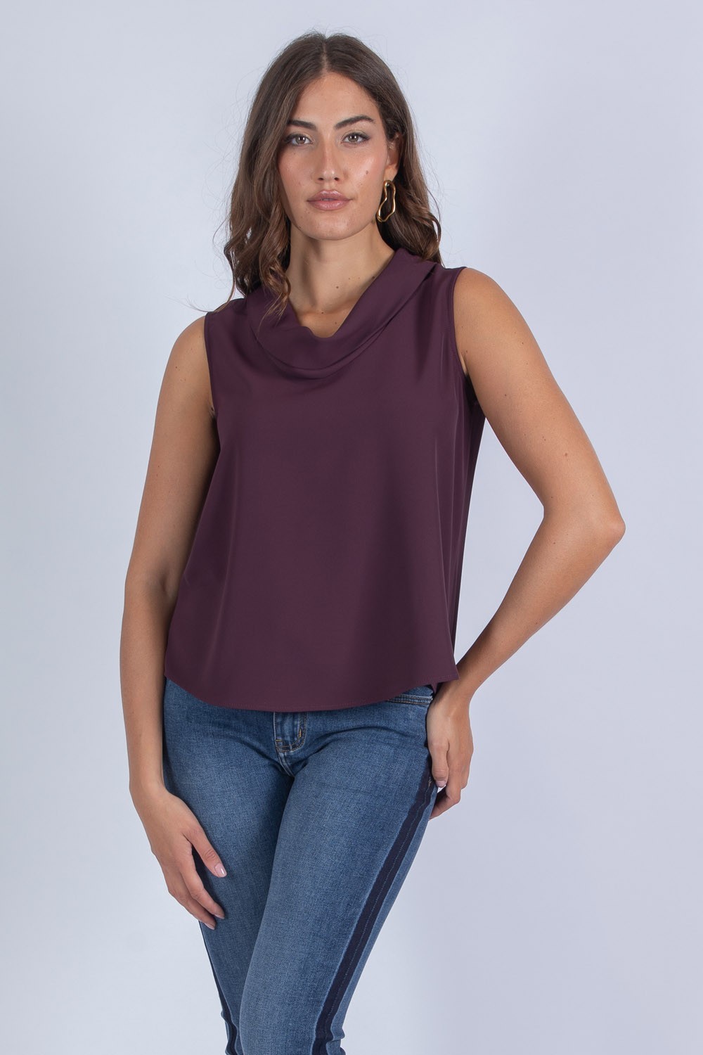Esalta la tua femminilità con il nostro top giromanica con scollo a cloche, un capo dal design pulito ma ricercato, perfetto per completare look sia eleganti che casual. Lo scollo a cloche, morbido e leggermente ondulato, incornicia il décolleté con grazia e dona un effetto fluido e raffinato.