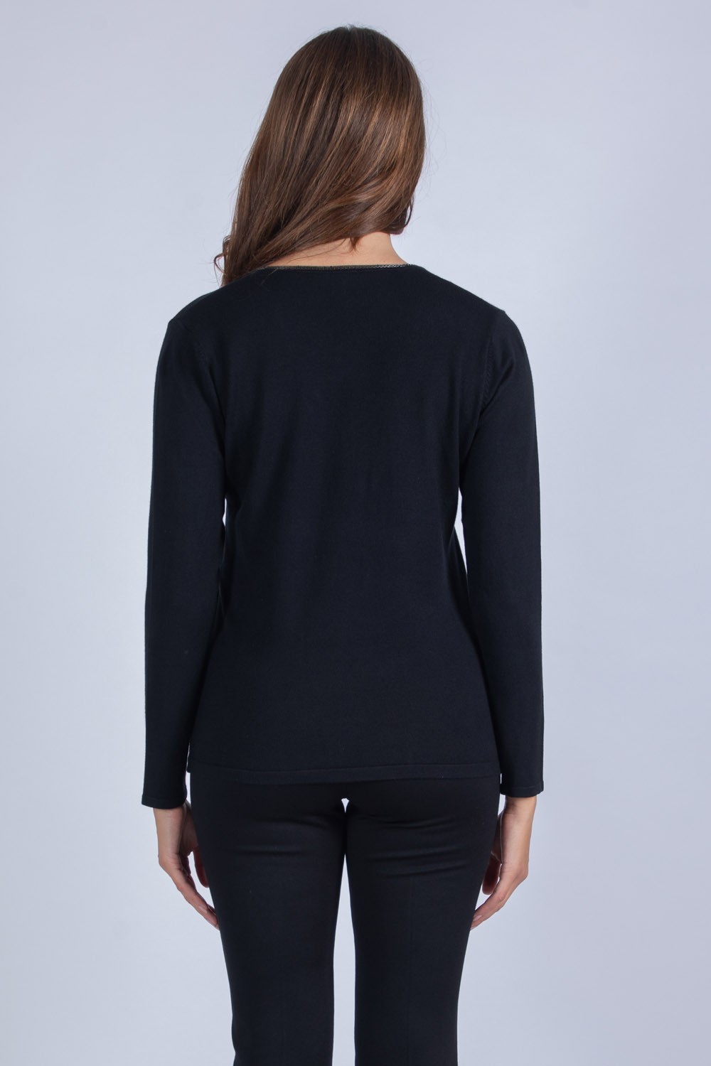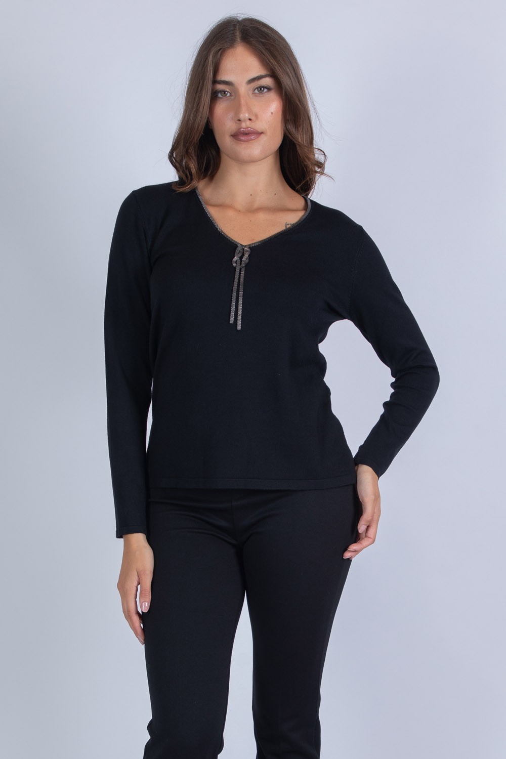Eleganza e carattere si incontrano in questa maglia con scollo a V, impreziosita da un raffinato accessorio in metallo che cattura lo sguardo e dona un tocco di originalità al tuo look. Il dettaglio metallico esalta la semplicità della maglia, rendendola perfetta sia per occasioni casual sia per momenti più formali .Non lasciarti sfuggire questo must-have: aggiungila subito al tuo guardaroba e fai brillare ogni tuo outfit! 70% viscosa 20% lana 10% elastan