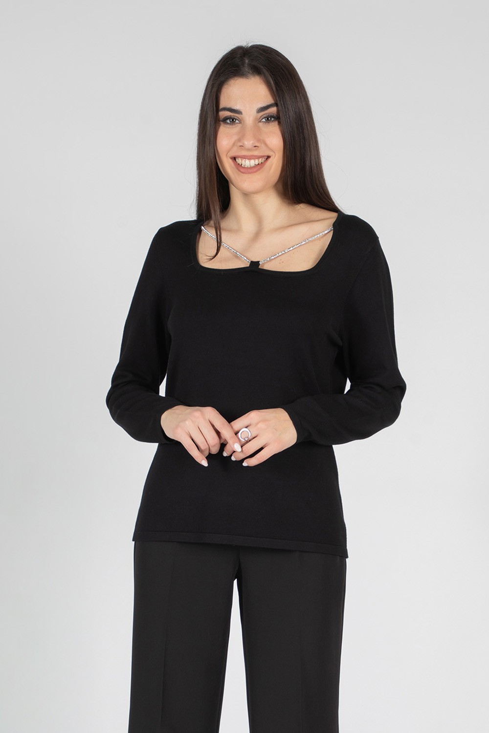 Scopri l'eleganza moderna di questa maglia scollo quadro, arricchita da applicazioni luccicanti che donano un tocco sofisticato e originale al capo. Ideale per chi ama distinguersi con classe senza rinunciare al comfort. Perfetta da indossare sia in ufficio che nel tempo libero, abbinala facilmente a pantaloni o gonne per un outfit versatile e contemporaneo. Non perdere l'occasione di aggiungere questo capo unico al tuo guardaroba: clicca subito per acquistarlo!70% viscosa 20% lana 10% elastan