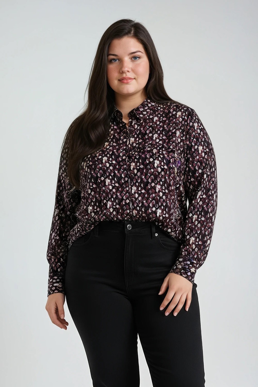 Camicia curvy con fantasia vivace e abbottonatura frontale, per una vestibilità comoda e leggera.Un capo versatile e femminile, perfetto per creare look sia casual che più eleganti con un tocco di colore e stile.? Non lasciarti sfuggire questa camicia, lideale per valorizzare la tua silhouette con comfort e personalità! 100% poliestere