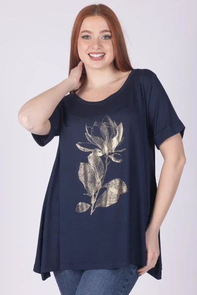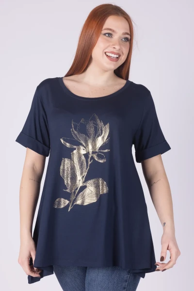 T-shirt girocollo a mezza manica dal modello svasato, arricchita da stampa fiori Maillard che dona al capo un tocco vivace e originale.