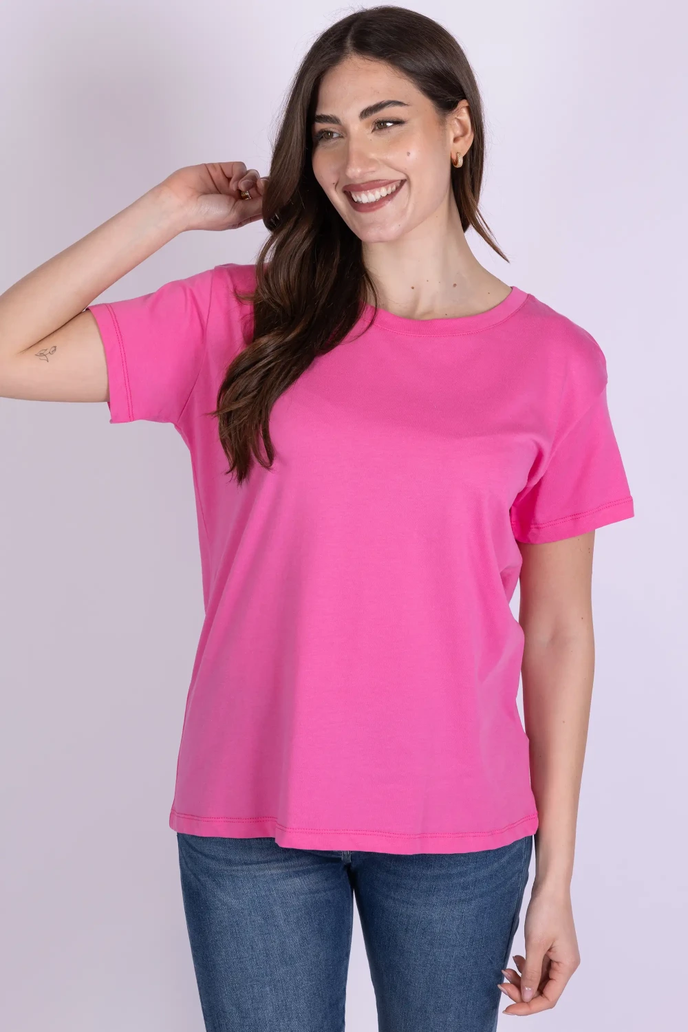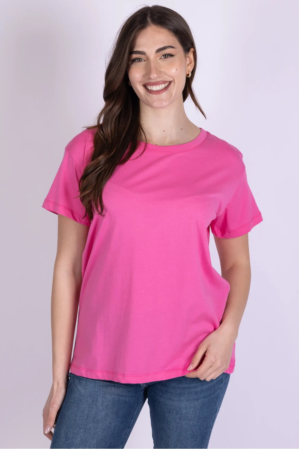 T-shirt in cotone tinta unita, caratterizzata da un design essenziale che la rende un capo pratico e sempre attuale.