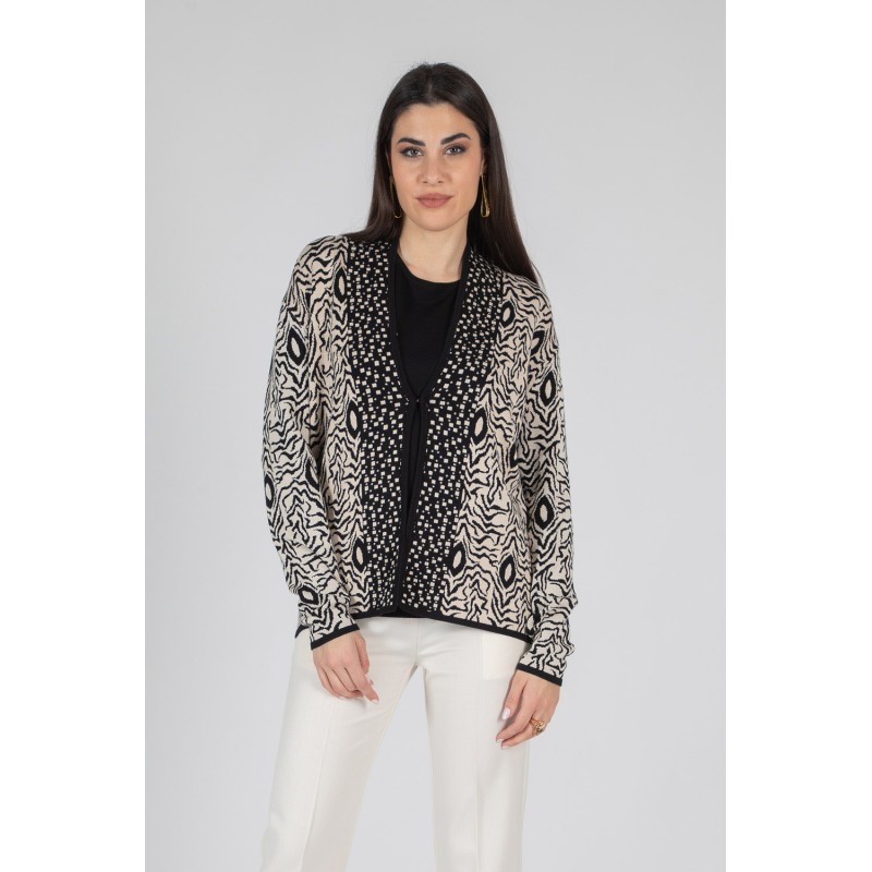 Twin set in maglia jacquard composto da una mezza manica basic e un elegante cardigan con disegno animalier. Il motivo audace si fonde con la morbidezza del tessuto, in una combinazione di viscosa, lana ed elastan che garantisce comfort e vestibilità impeccabile. Un look coordinato ma grintoso, perfetto per aggiungere personalità anche agli outfit più semplici. Indossalo insieme o separa i capi per moltiplicare gli abbinamenti: lasciati conquistare da uno stile deciso e contemporaneo. 70% viscosa 20% lana 10% elastan
