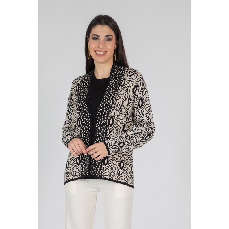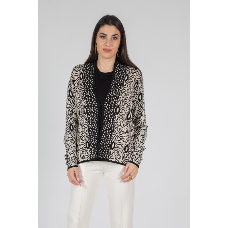 Twin set in maglia jacquard composto da una mezza manica basic e un elegante cardigan con disegno animalier. Il motivo audace si fonde con la morbidezza del tessuto, in una combinazione di viscosa, lana ed elastan che garantisce comfort e vestibilità impeccabile. Un look coordinato ma grintoso, perfetto per aggiungere personalità anche agli outfit più semplici. Indossalo insieme o separa i capi per moltiplicare gli abbinamenti: lasciati conquistare da uno stile deciso e contemporaneo. 70% viscosa 20% lana 10% elastan